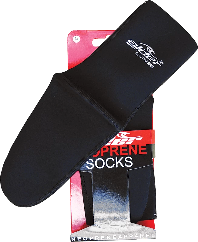 Les chaussettes Alder Quatro pour palmes sont fabriquĂ©es en nĂ©oprène souple Ă double doublure de 2,5 mm d’Ă©paisseur avec des coutures plates.